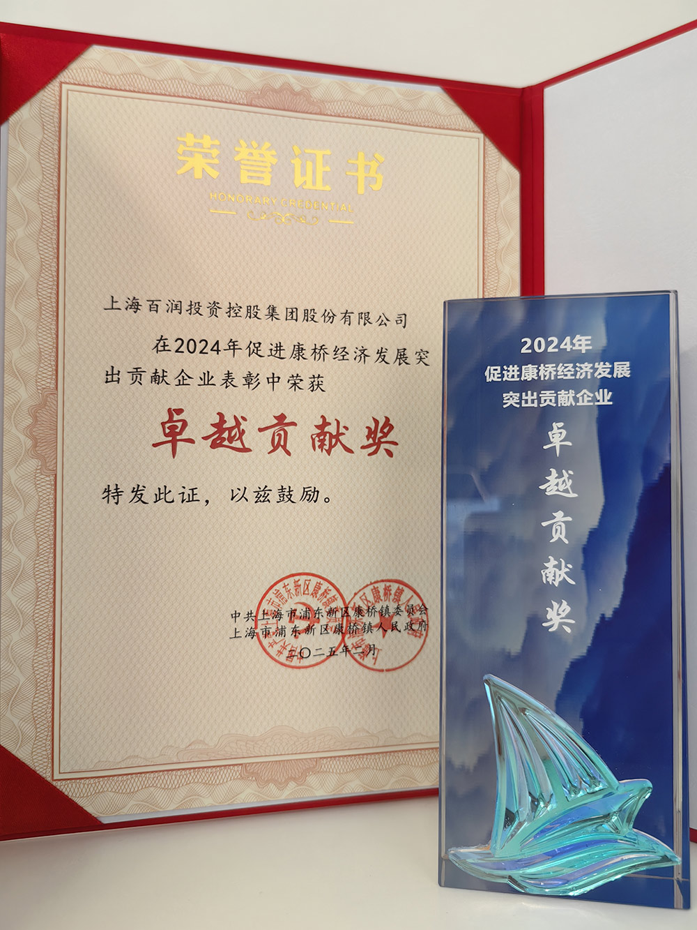 2月,上海百润投资控股集团股份有限公司在2024年康桥镇促进经济发展突出贡献企业表彰中,凭借对区域经济的持续推动与产业创新,获颁“卓越贡献奖”。